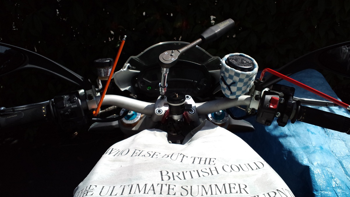 アプリリアのハンドルに換装した時に、バーエンドを無理栗ネジ込んだ事を忘れていました(゜゜)