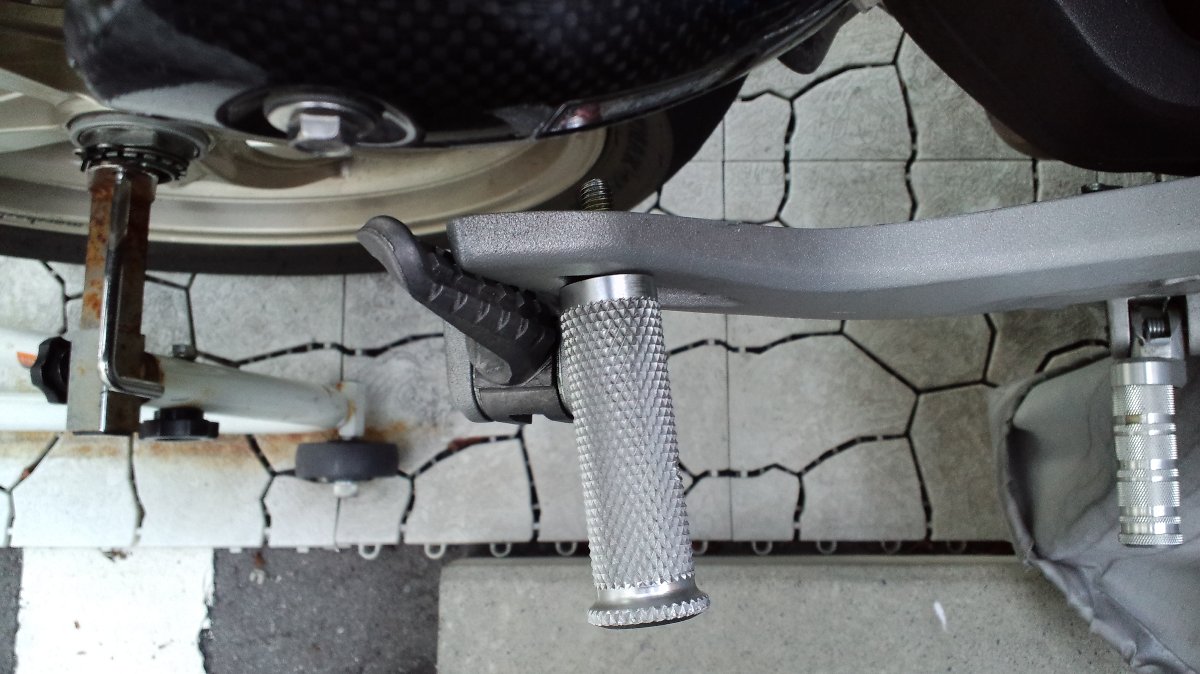 タンデムステップの前の穴に以前M1000sで使っていたアエラステップの残骸を取り付けて見たの図。