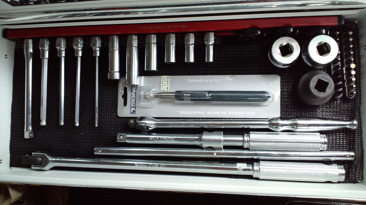 今まで使ってたKTCのツールボックスですが、思い入れはあるんですが、さすがに容量がきつくなってましたし・・・