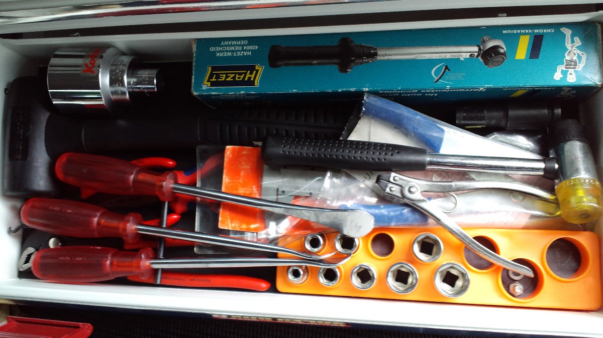 ごちゃごちゃしてますが、PBのタイヤレバー×3、コーケンの46mmソケット変換アダプター付、