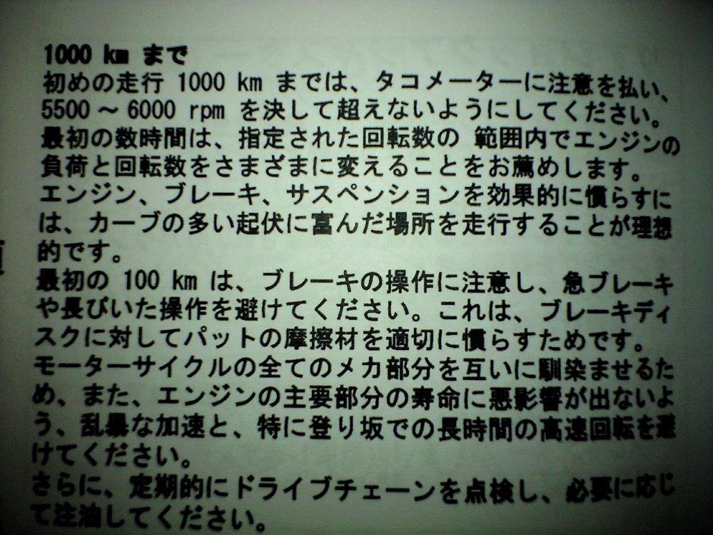 『最初の1000kmは5500~6000rpmを超えないように・・・・』