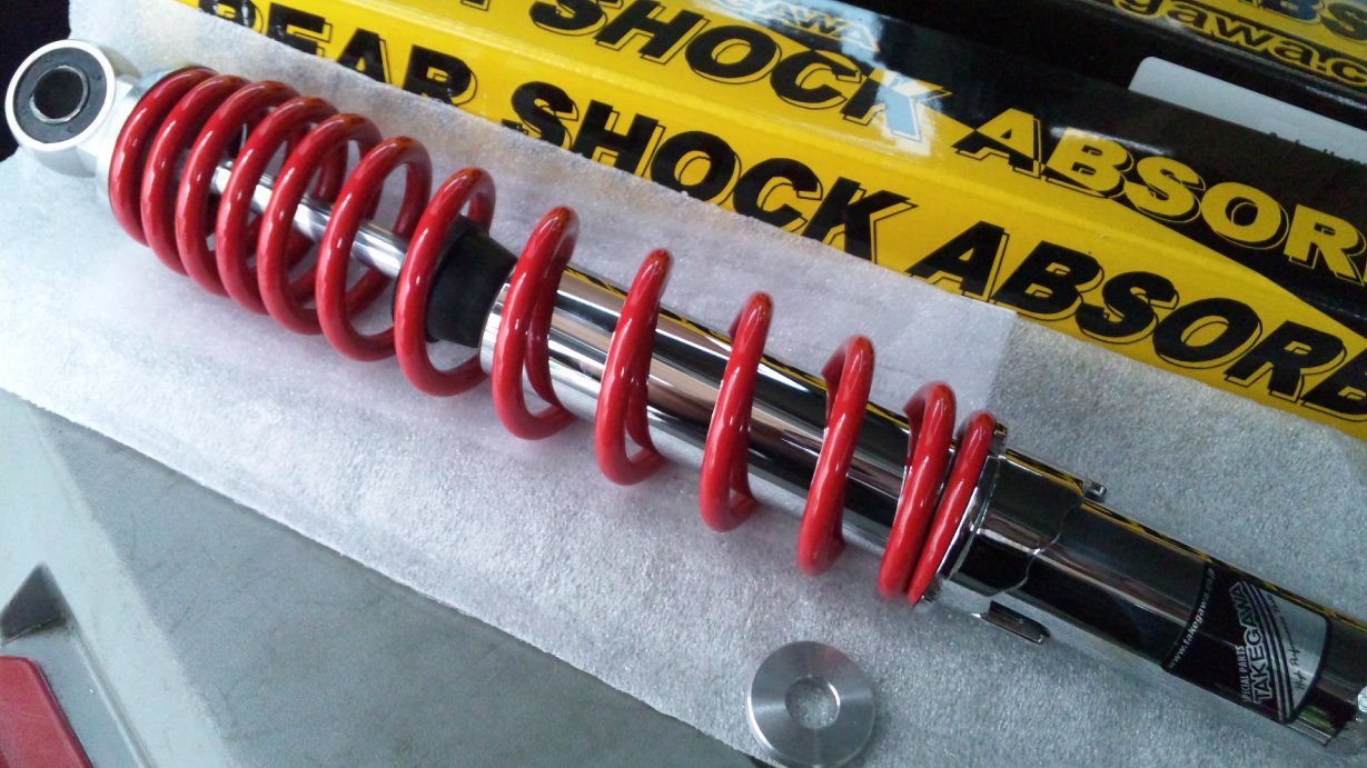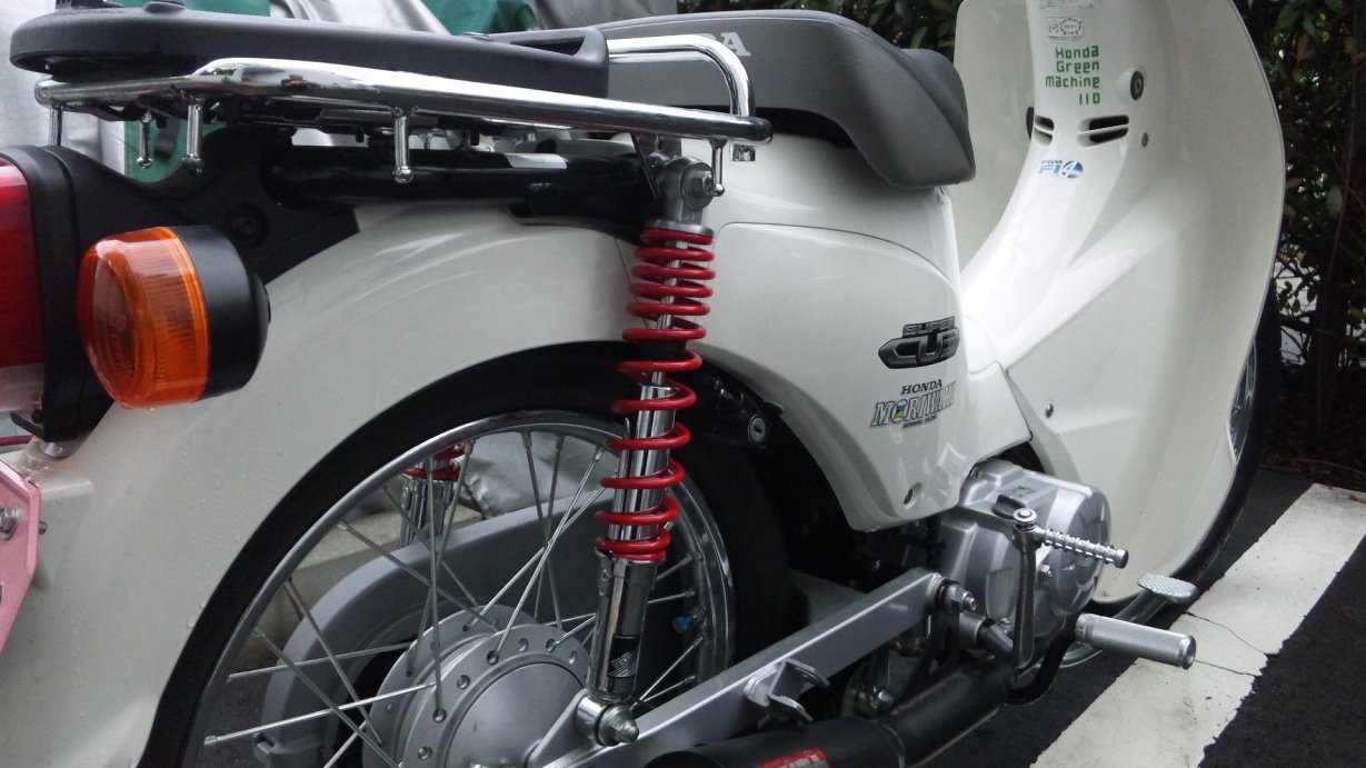 武川さんところのリアショック。ちゃぁんと、CUB110専用設計です。