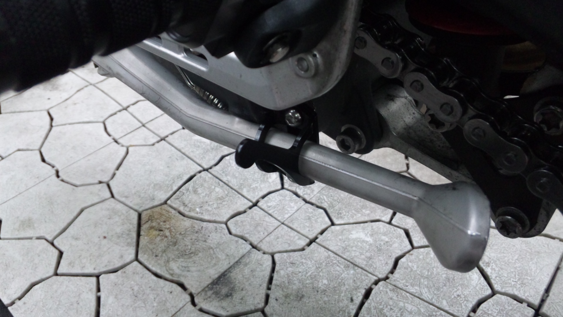 日本車だとわりと普通についてるスタンドの出し入れがしやすいようについてる棒が、
