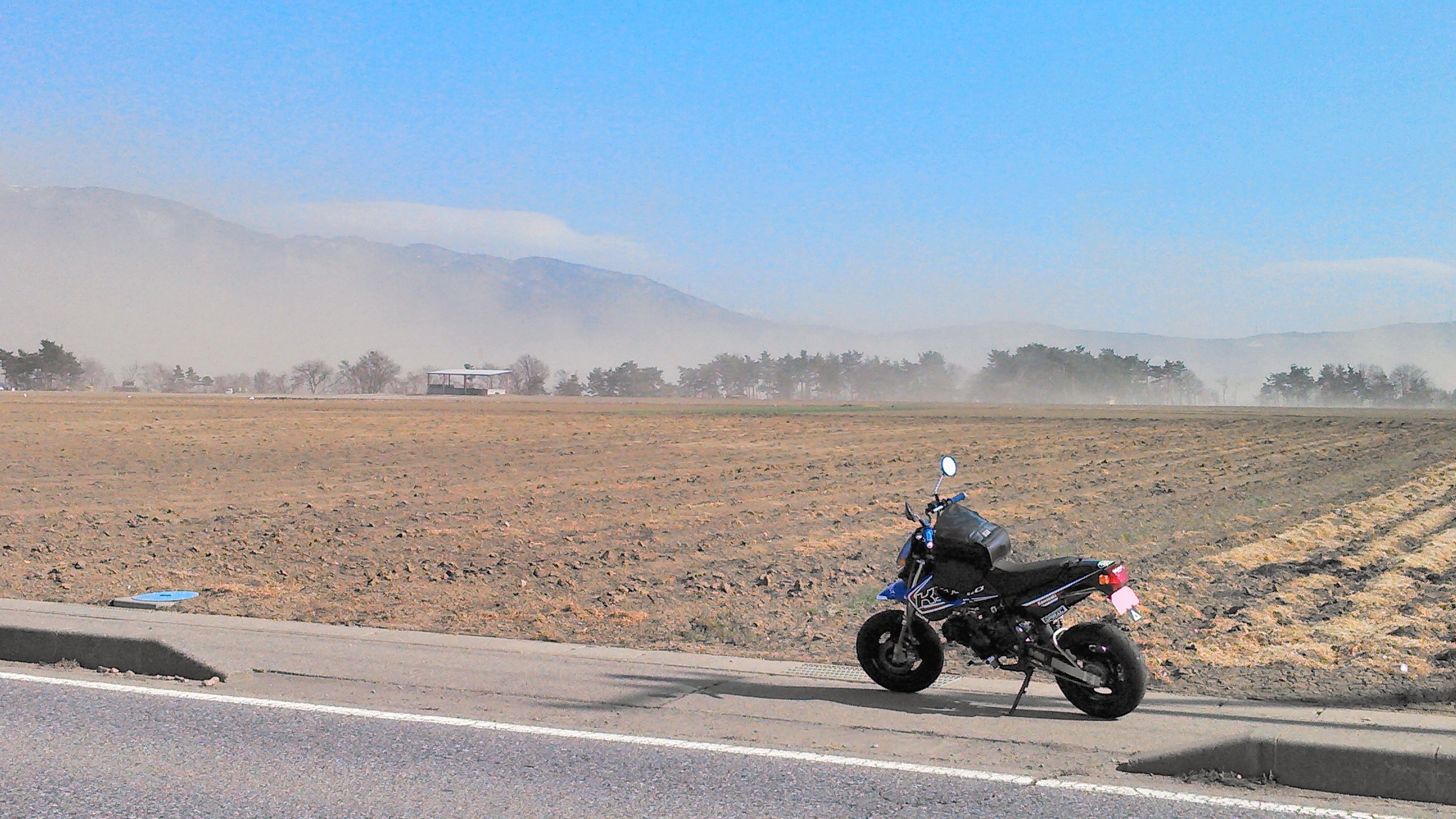 その帰宅コースに選んだ道が例年そうなんだけど田畑の土が舞い上がってエライ事に・・・(><)