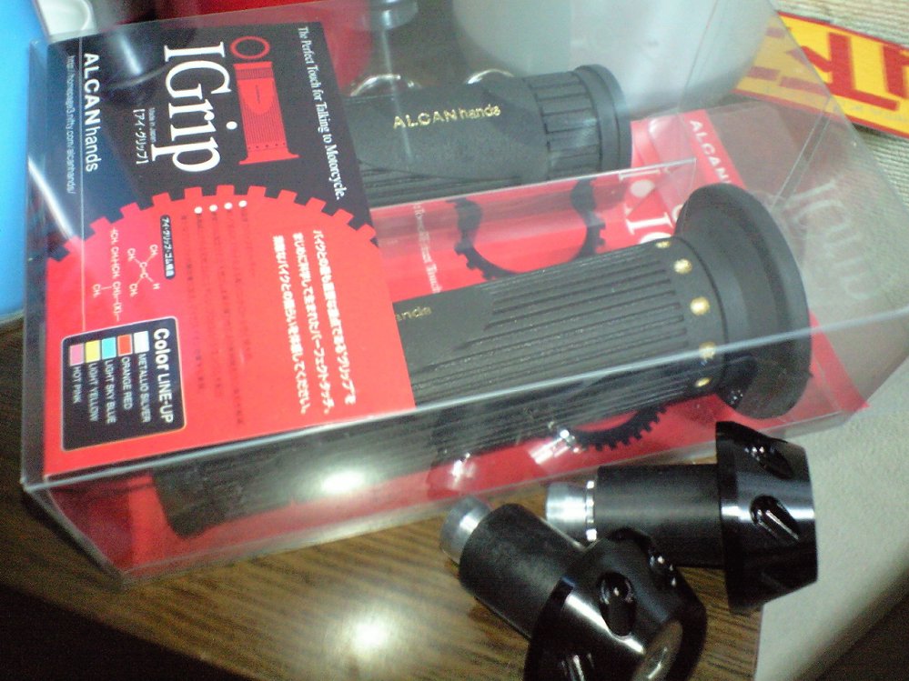 ALCAN hands(アルキャンハンズ) のIGrip(ゴールド)とバーエンドRAINYのBlack。