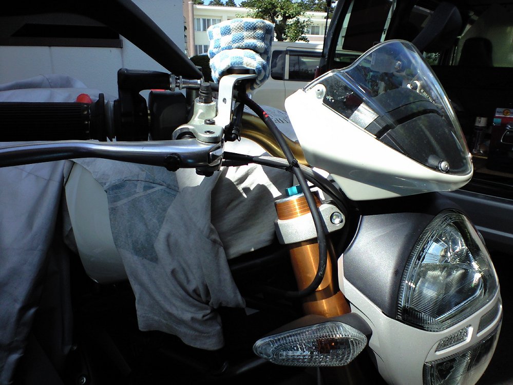 タンクカバーを押せるので、傷つく事無くハンドルロックはできるので、まぁ、良しとします。