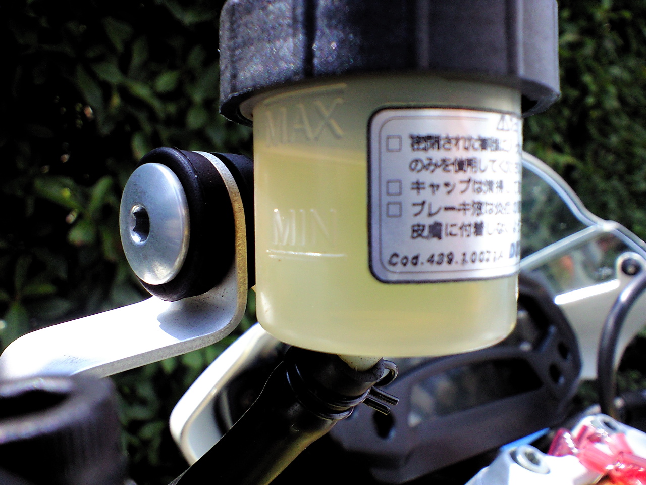 ついでにブレーキのリザーブタンクより小振りで容量の少ないクラッチのリザーブタンク、